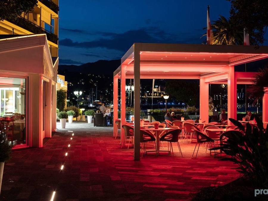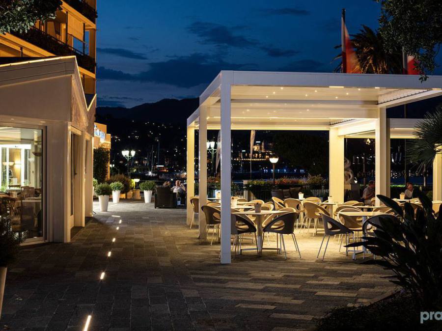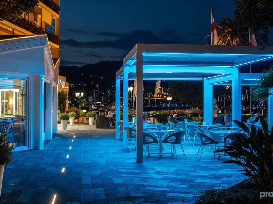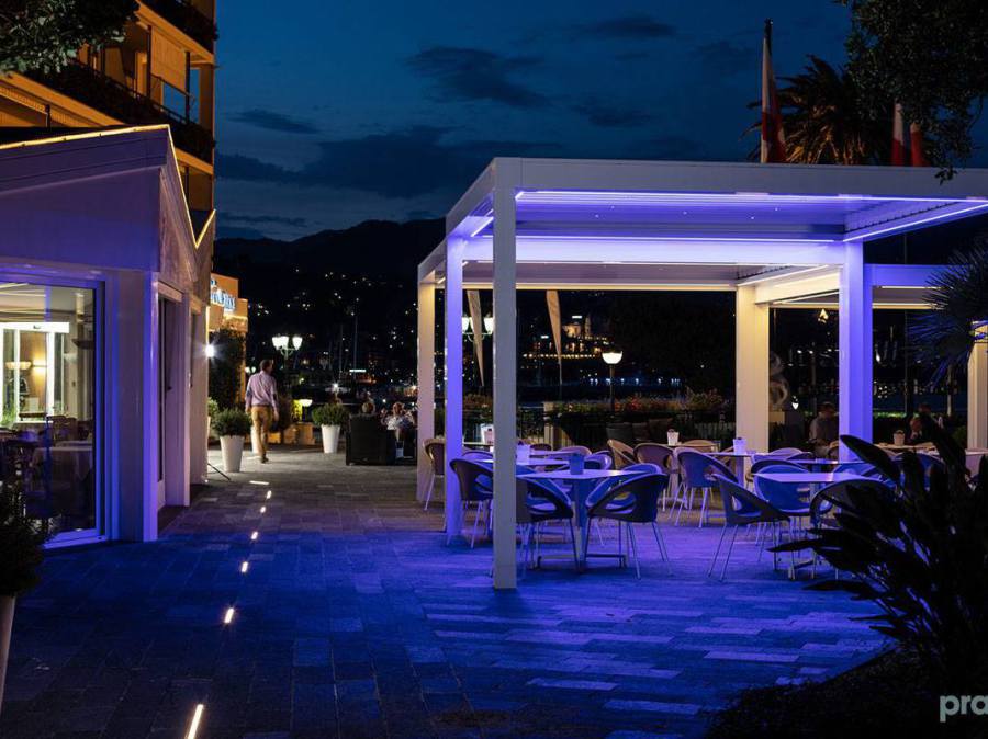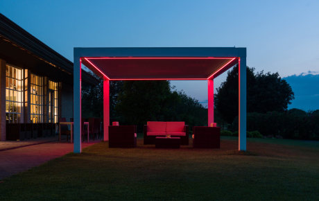Per rendere l'ambiante conviviale e ancor più funzionale anche con il calar della sera, le pergole bioclimatiche possono essere completate con faretti spot sulle lame frangisole.