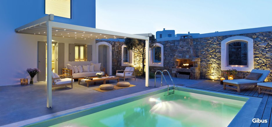 Pergole bioclimatiche a lamelle orientabili e impacchettabili