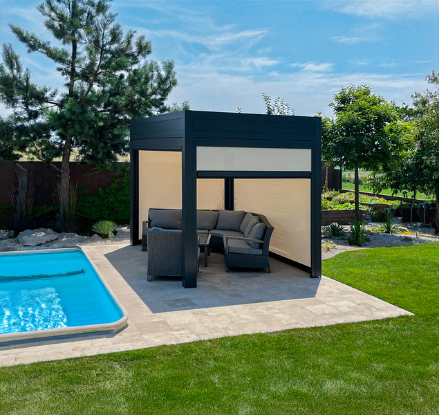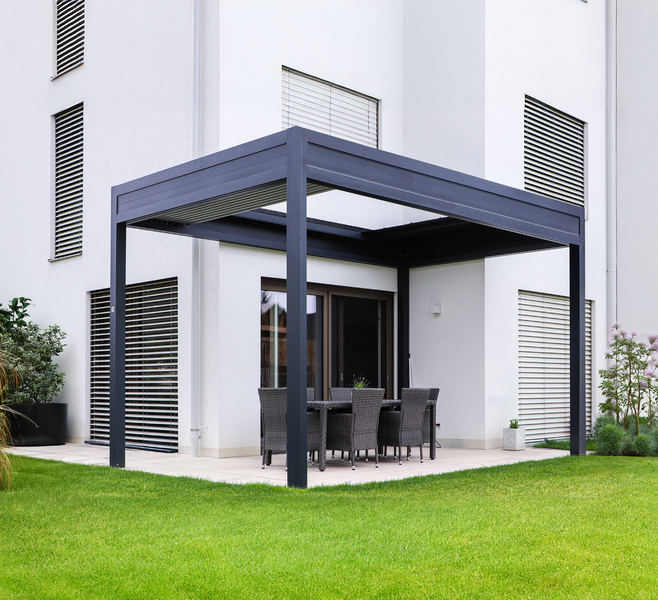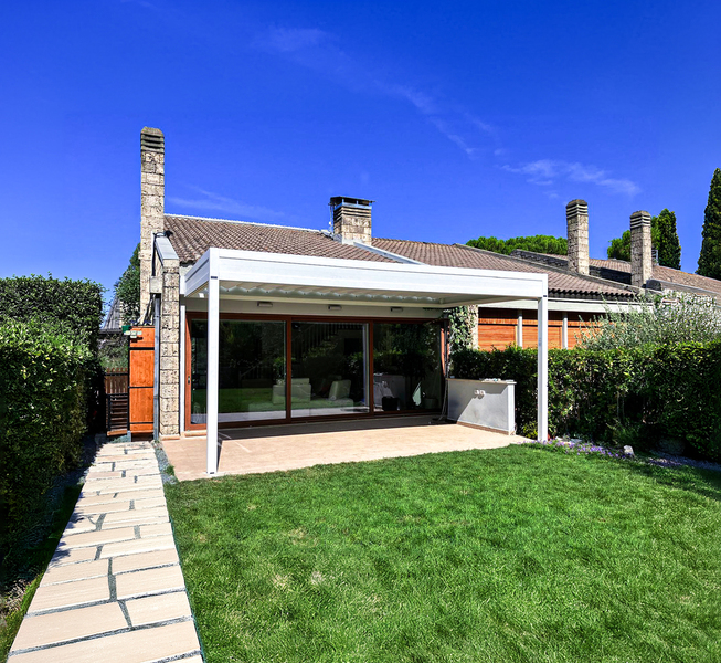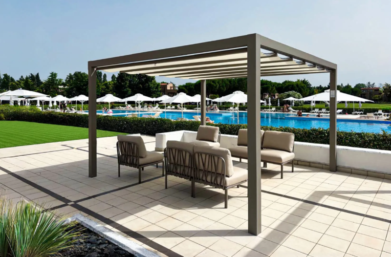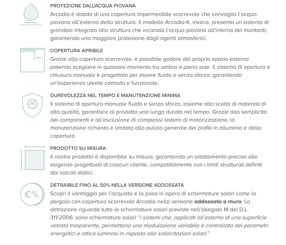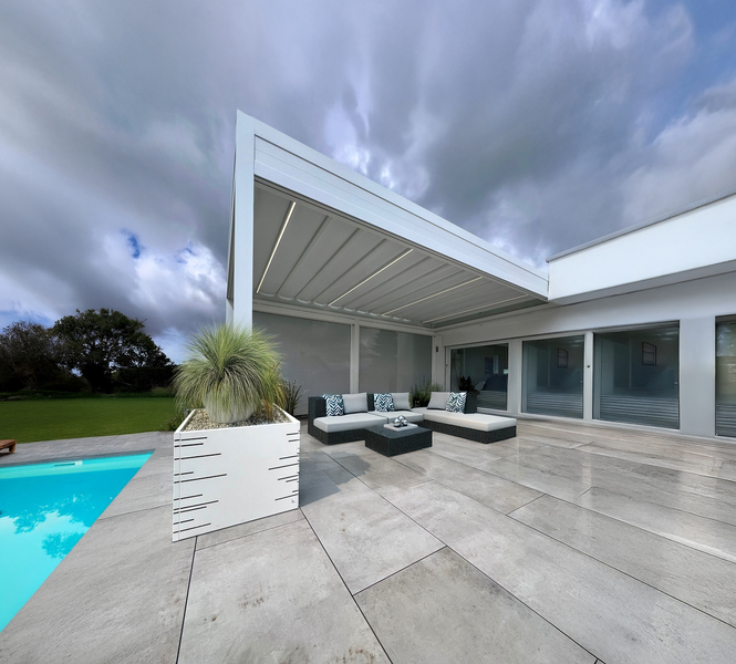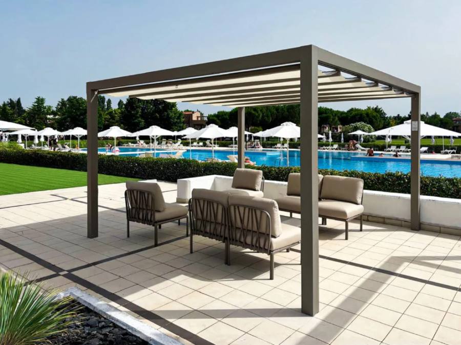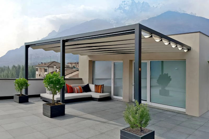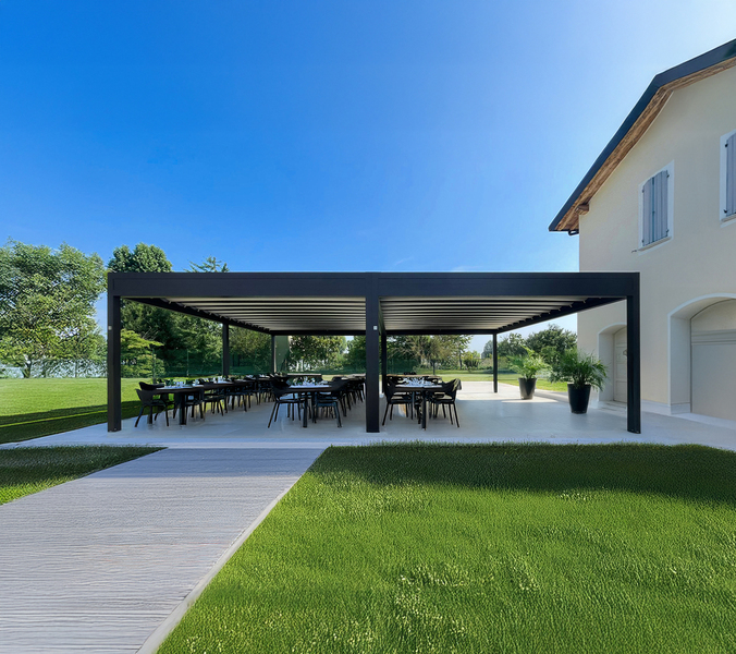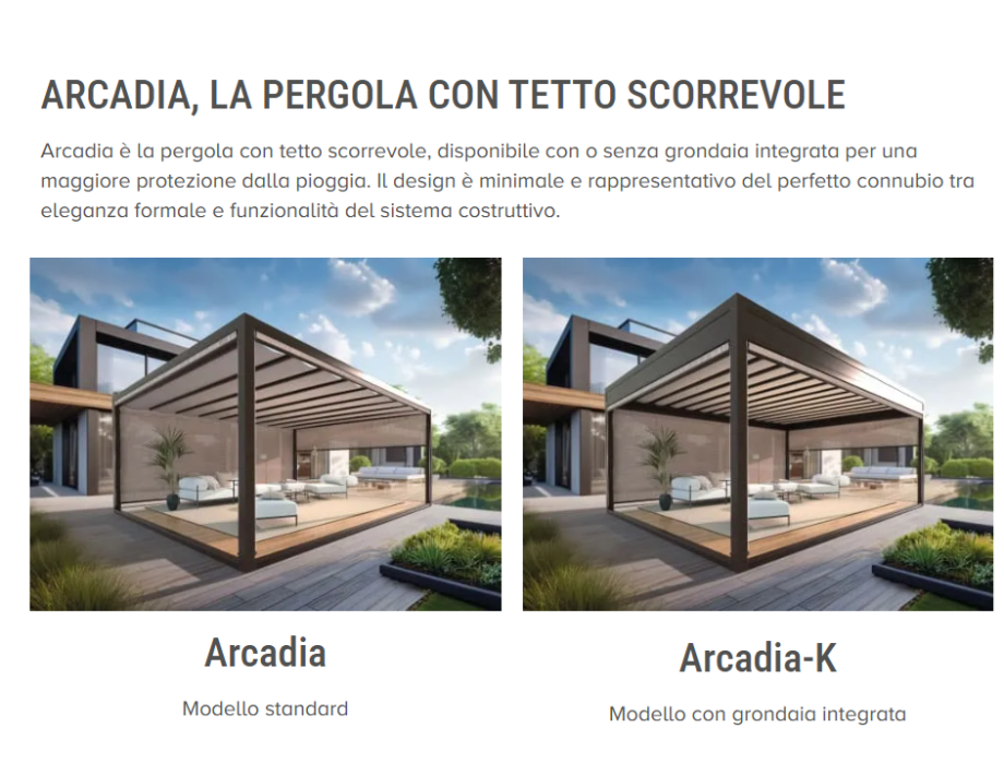 La Pergotenda ARCADIA-K è la pergola con tetto scorrevole manualmente con grondaia integrata.Il design è minimale e rappresentativo del perfetto connubio tra eleganza formale e funzionalità del sistema costruttivo .